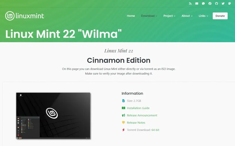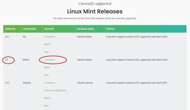 以下のURLにアクセスして、バージョン22のCinnamonエディションをクリックします。
