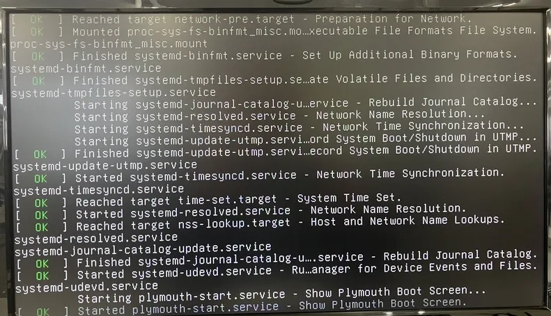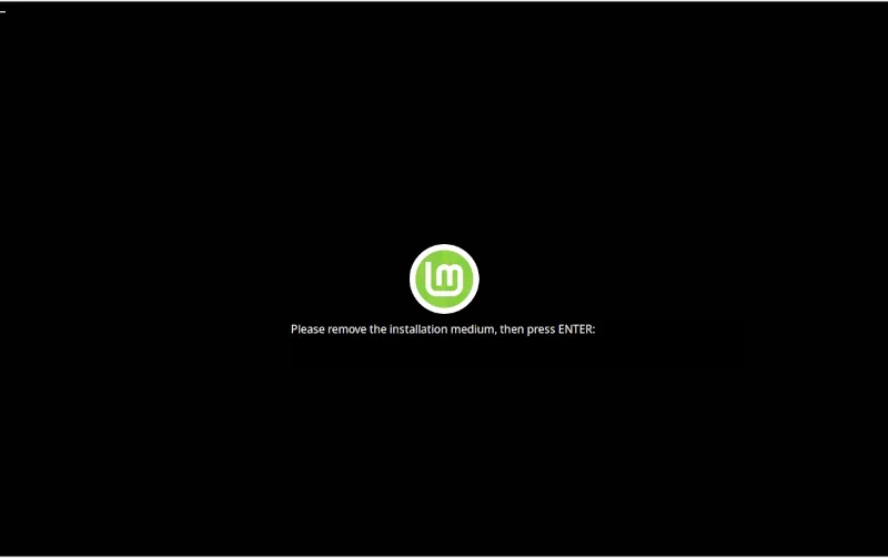 「Please remove the installation medium, then press ENTER:」と表示された場合は、USBメモリをパソコンから取り外し、「Enter」キーを押してください。