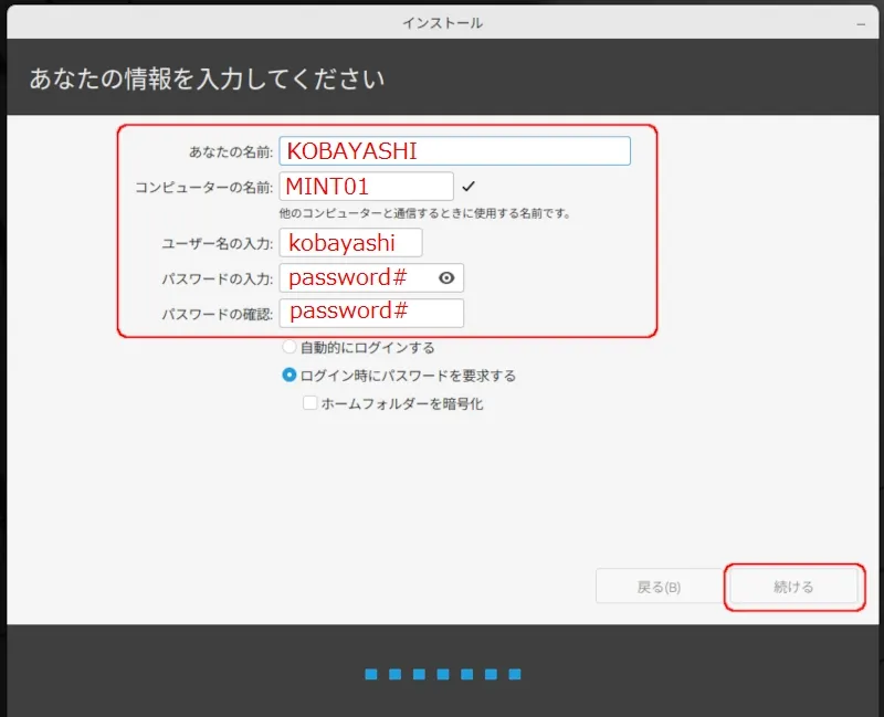 ここで設定した情報は非常に重要です。特にパスワードは頻繁に使用するため、必ず記録しておきましょう。