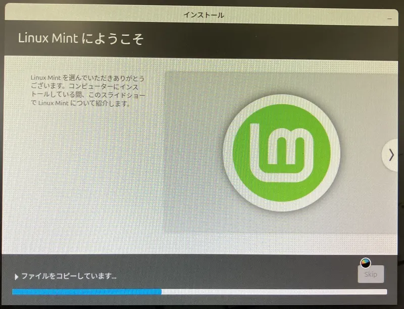 デスクトップ左上の「Install Linux Mint」をダブルクリックして、PCへのインストールがスタートします。