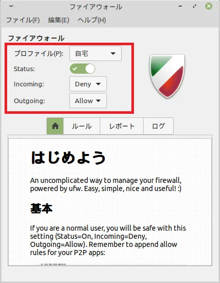 ウイルス感染リスクが低いと言われるLinuxですが、近年ではLinuxを標的としたマルウェアも増加傾向にあり、油断は禁物です。ファイアウォールは、不正なアクセスからシステムを保護するための重要な防御壁ですので、必ず設定しておきましょう。