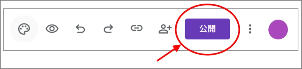 ①「公開」ボタン(紫色)をクリック