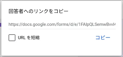 ③最初に公開した直後には、「回答者へのリンクをコピー」が開きますのでコピーして使用します。