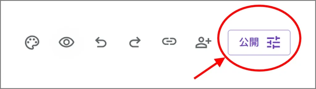 ①一旦公開したGoogleフォームを停止するには、再び「公開」をクリック