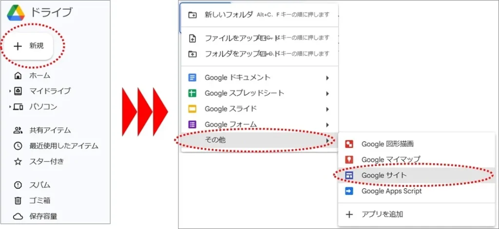 Googleドライブ内にGoogleサイトファイルが追加されたことを確認することができます。