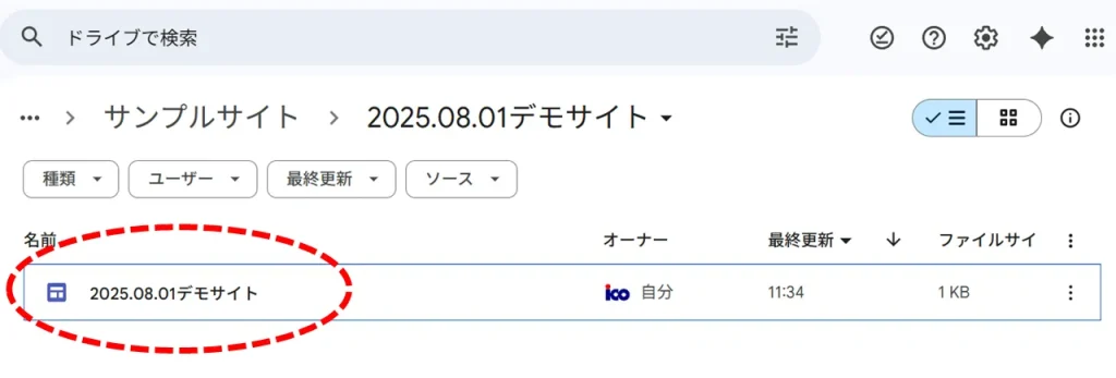 この名称がGoogleドライブ上の、Googleサイトのファイル名になります。