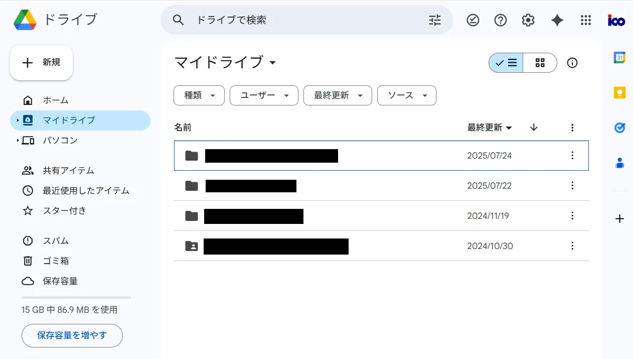 Chromeを、サイト制作をするGoogleアカウントで開き、Googleドライブを開きます。