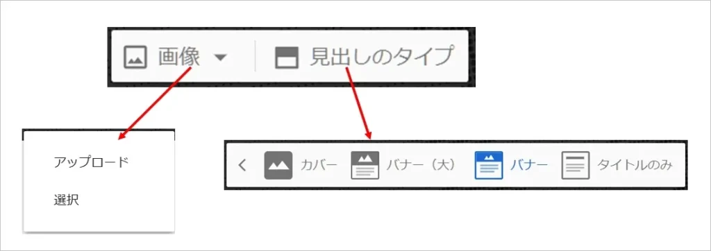 見出しエリアにカーソルを移動すると、「画像」と「見出しのタイプ」ボタンが出現します。